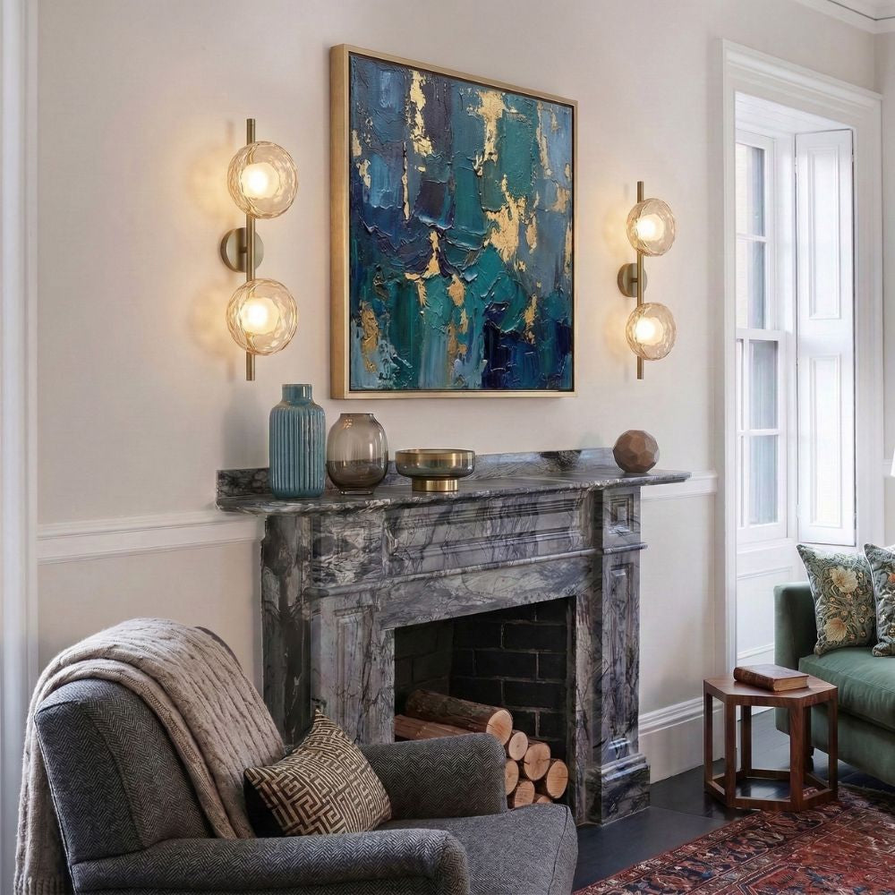Niech Ceto Szklana Lampa Ścienna wypełni przestrzeń miękkimi refleksami. Faliste szkło i ciepłe odcienie tworzą spokojną i komfortową atmosferę – idealną do wnętrza, w którym liczy się każdy detal.
